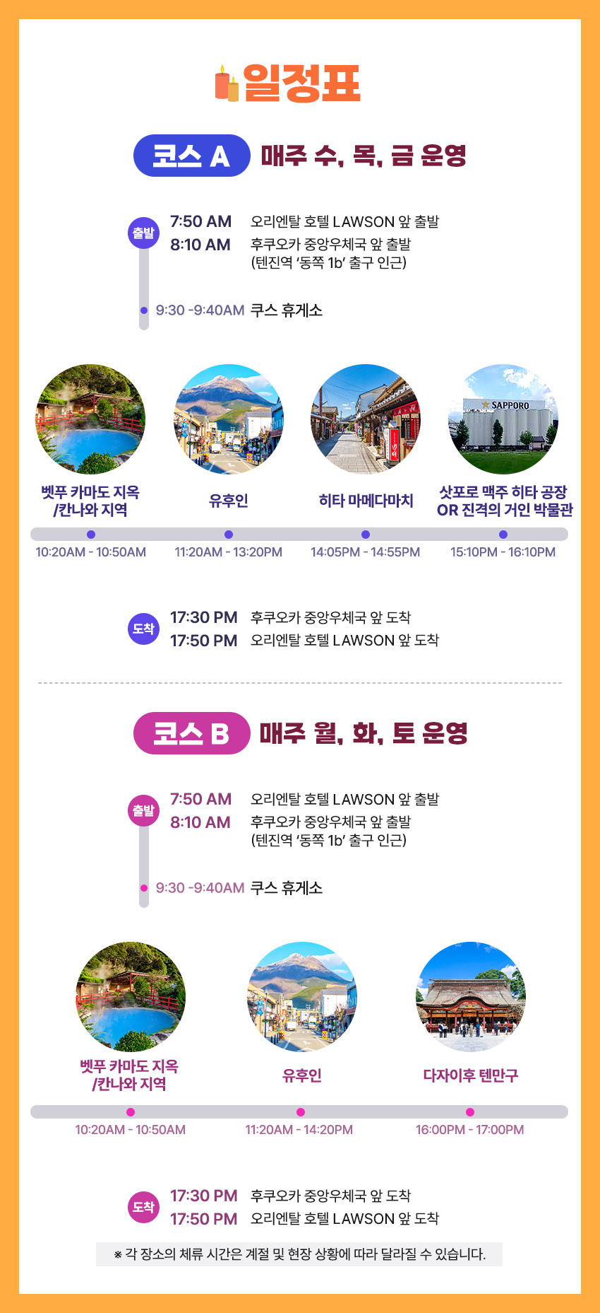 1. 후쿠오카 오리엔탈 호텔 로손 앞 / 오전 7시 40분 미팅, 오전 7시 50분 출발