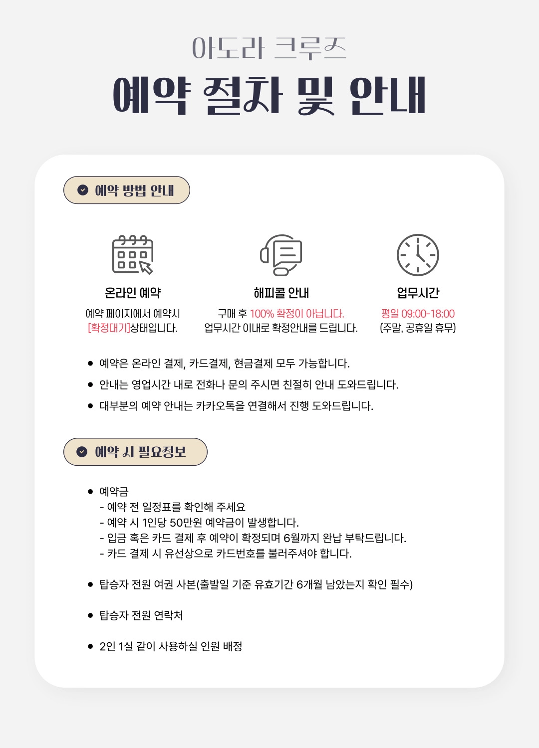* 정확한 미팅 장소 및 시간은 업체에서 직접 안내 드립니다.