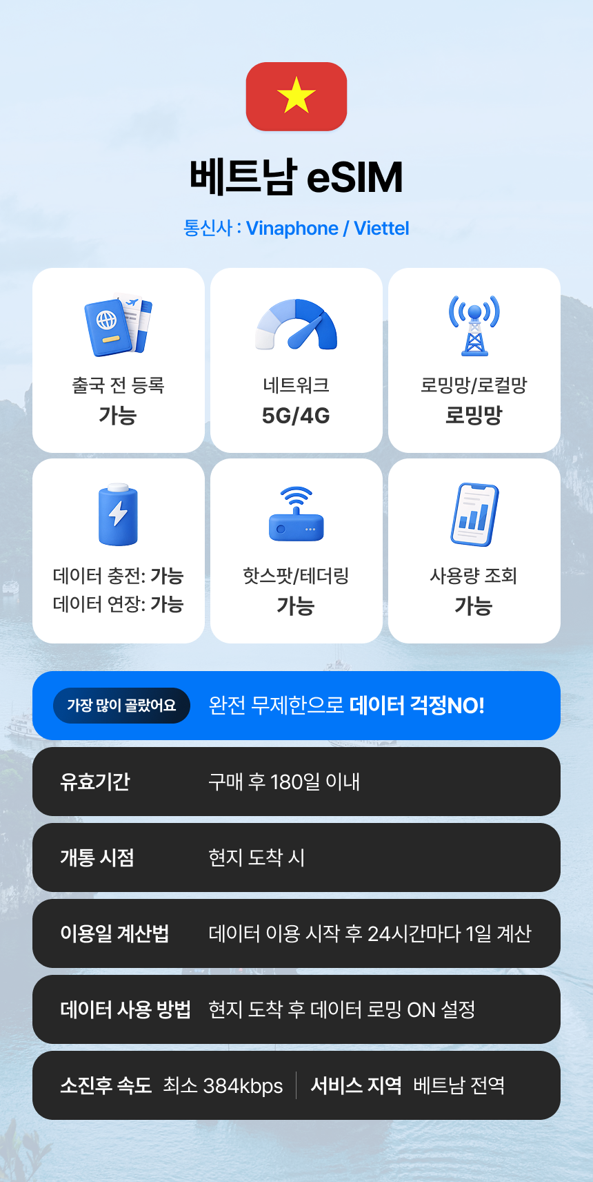 더욱더 가볍고 안전하게 완전 무제한 데이터와 간편한 여행을 떠나보세요!