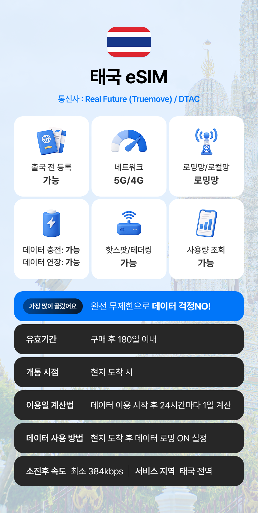 더욱더 가볍고 안전하게 완전 무제한 데이터와 간편한 여행을 떠나보세요!