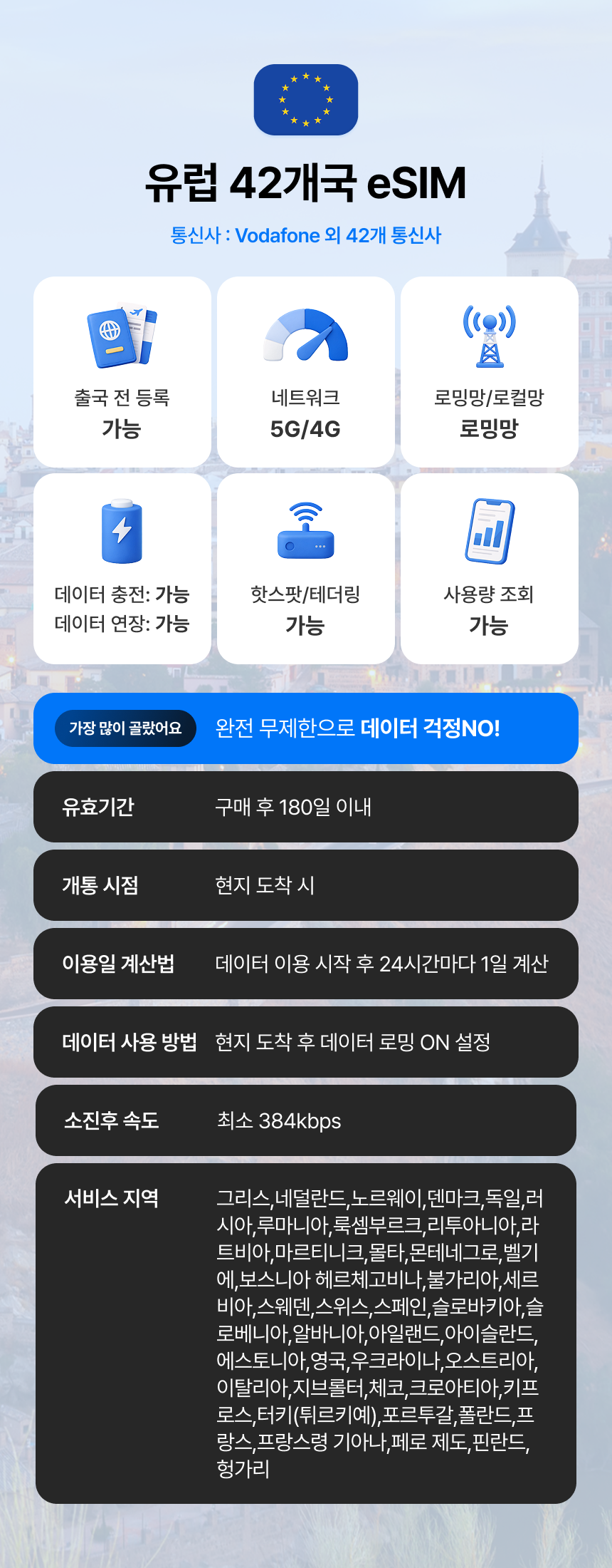 더욱더 가볍고 안전하게 완전 무제한 데이터와 간편한 여행을 떠나보세요!