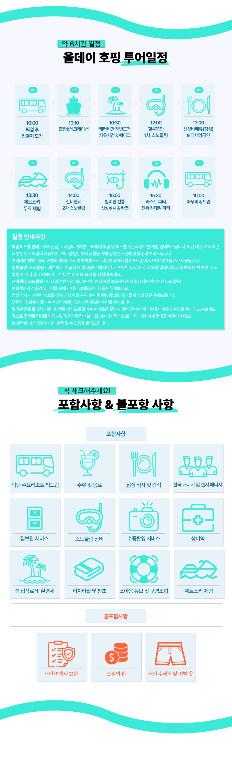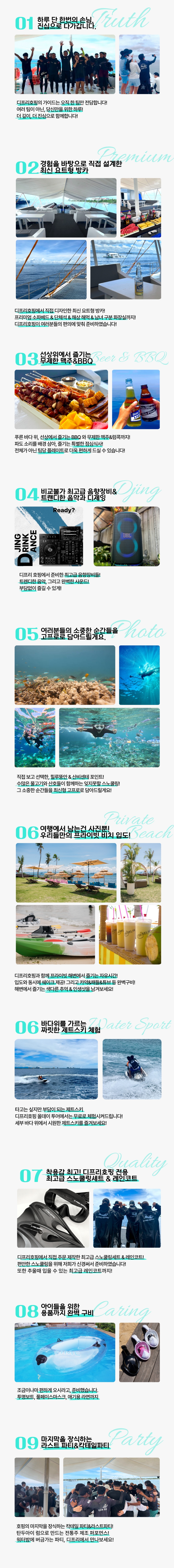 트렌디한 음악과 함께 바다 위를 가르는 짜릿한 무료 제트스키 체험, 그리고 최신형 고프로를 사용해 여러분의 스노클링 장면을 담아드리니 소중한 추억을 오래 기억하기에도 좋아요. 무엇보다 마지막을 장식할 화려한 파티까지! 지금 디프리 호핑에서 만나보세요!