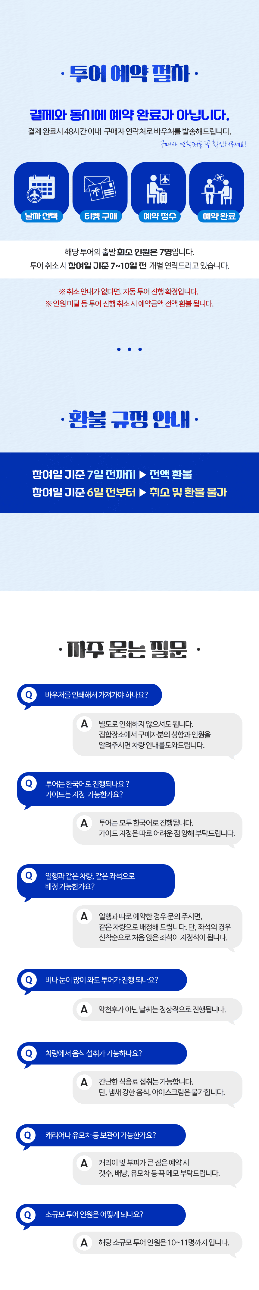오전 9시 30분 출발로 여유로운 아침을 보낼 수 있는 흰그림자 투어와 함께 즐거운 여행을 완성해 보세요!