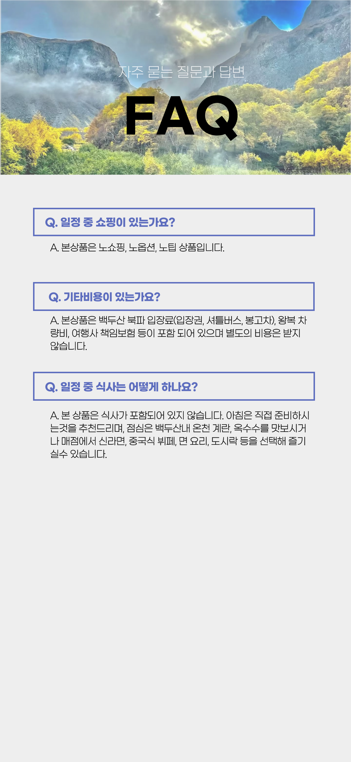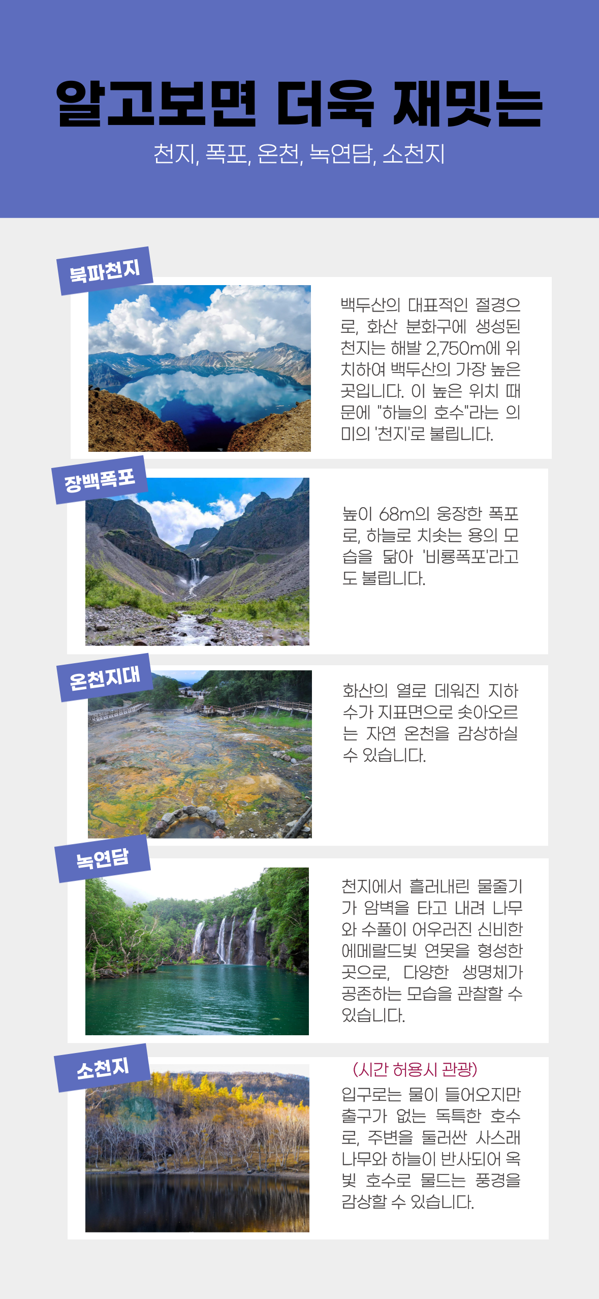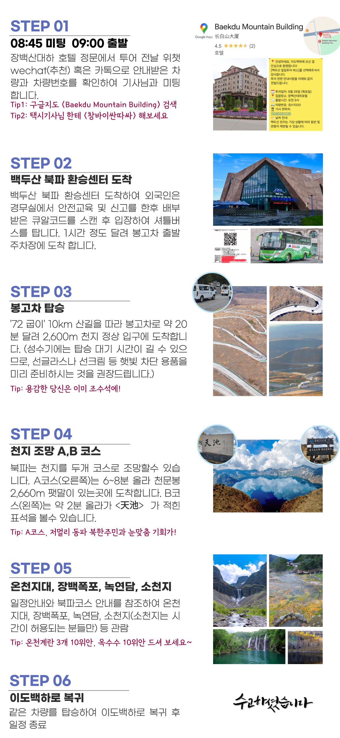 이도백하에서 출발해 하루 만에 백두산 천지를 다녀오는 알짜 일일 투어를 소개해요! 전용 차량으로 핵심 코스만 콕 집어 이동해 체력 부담도 적고, 동선도 효율적이라 편안하게 여행할 수 있어요. 하루 일정이라 다른 여행과 함께 즐기기에도 딱 좋아요. 백두산의 매력을 제대로 느끼고 싶다면, 이 투어로 떠나보세요!