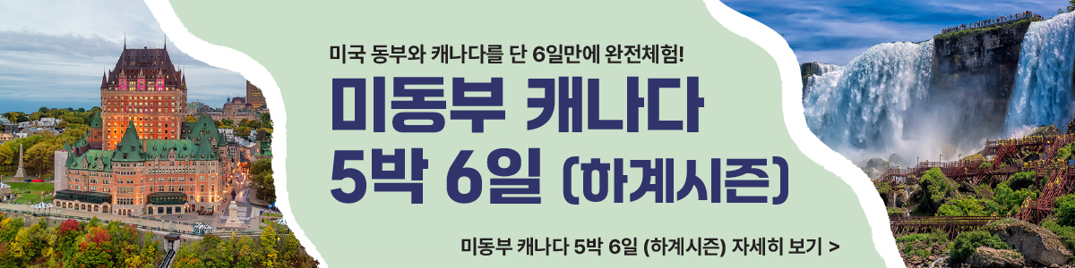 여행가의 마음을 설레게 하는 아름다운 미국 동부와 캐나다의 핵심 명소를 둘러보는 5박 6일 하이라이트 투어를 소개해요.