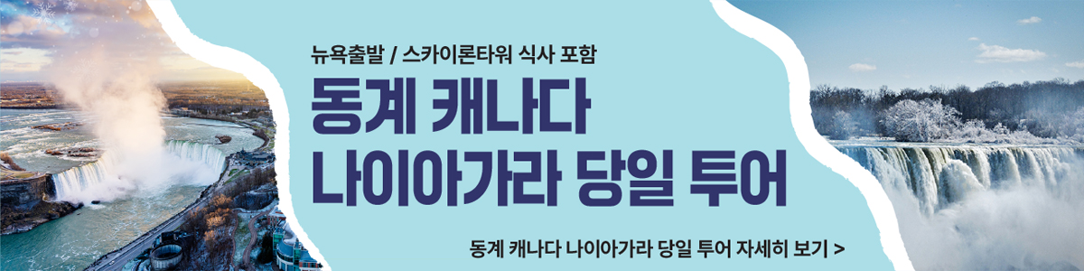 짧은 기간이지만 꽉 찬 일정으로 두 나라의 매력을 완벽하게 경험할 수 있도록 준비했어요. 감동과 행복이 공존하는 특별한 여행을 통해 잊지 못할 추억을 만들어 보세요. 나이아가라 폭포를 이곳 저곳 뜯어 보면서 웅장한 자연을 가까이에서 느낄 수 있어요. 바람의 동굴을 선탟하시면 폭포 아래로 내려가 거센 물줄기와 바람을 온 몸으로 체험할 수 있어요. 미국과는 다른 매력의 토론토를 즐겨 보세요.