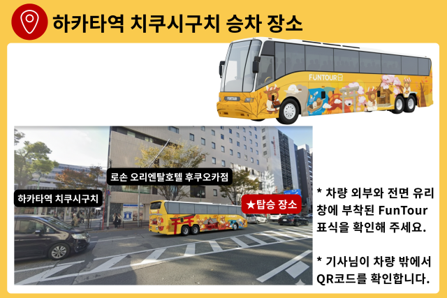 * 버스 차체 앞 또는 유리창의 FunTour 표식을 확인하시고, 기사님께 QR 코드를 제시해 예약 정보를 확인해 주세요.