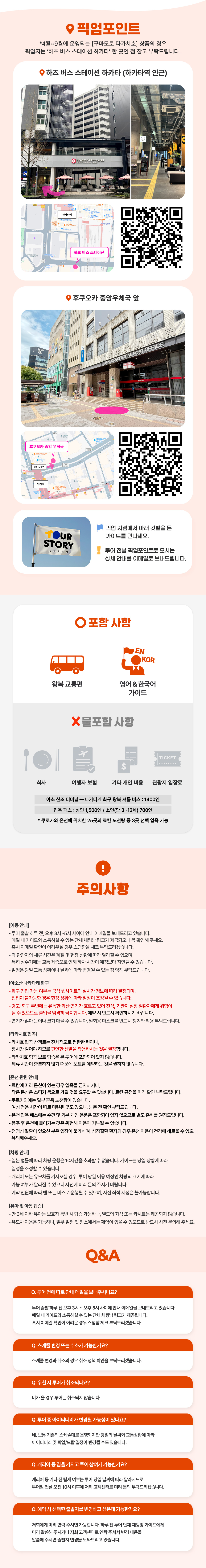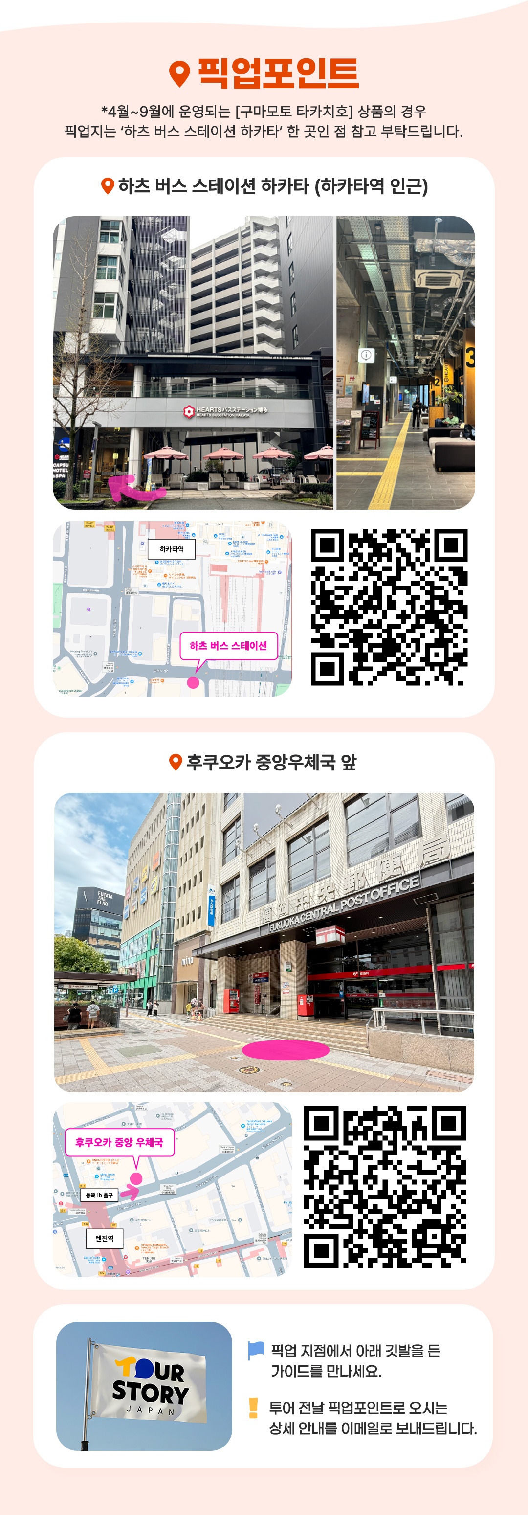 2. [10월 ~ 3월] 후쿠오카 중앙우체국 앞 (텐진역 동쪽 1b 출구 근처) / 오전 10시 30분 출발