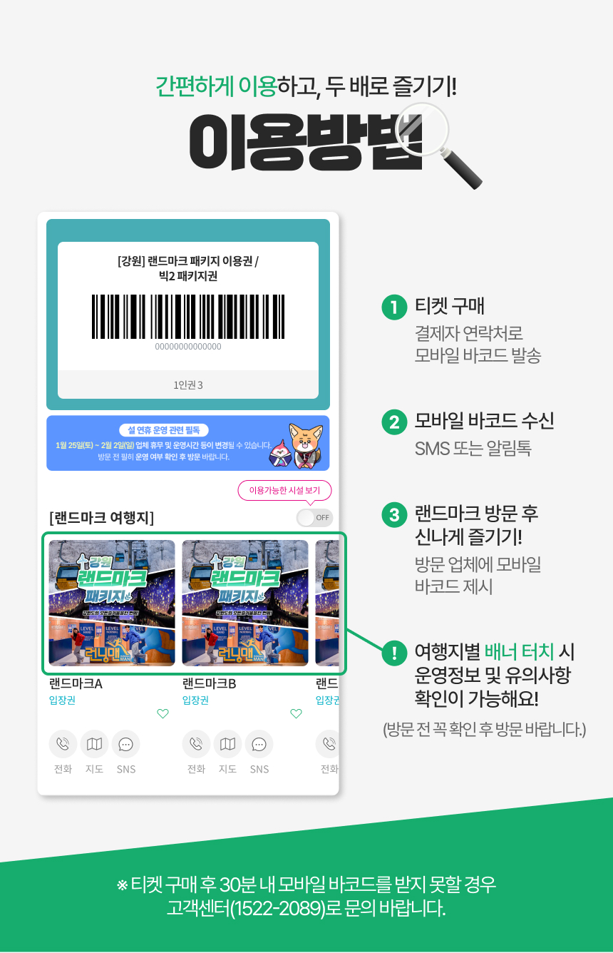 ※ 모바일 바코드 내 여행지별 정보를 꼭확인 후 이용 부탁드립니다.
