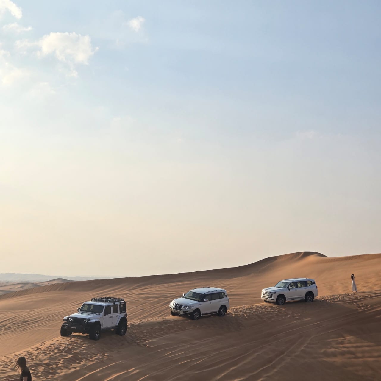 라합(Lahbab) 사막은 붉은색이 도는 고운 모래로 유명한 두바이 대표 사막 지역이에요. 높은 모래언덕이 끝없이 이어져 있어 듄베이싱을 즐기기에 최적화되어 있고, 정상에 오르면 끝없이 펼쳐진 사막 풍경을 감상하며 샌드보딩과 사진 촬영까지 여유롭게 즐길 수 있는 곳이에요.