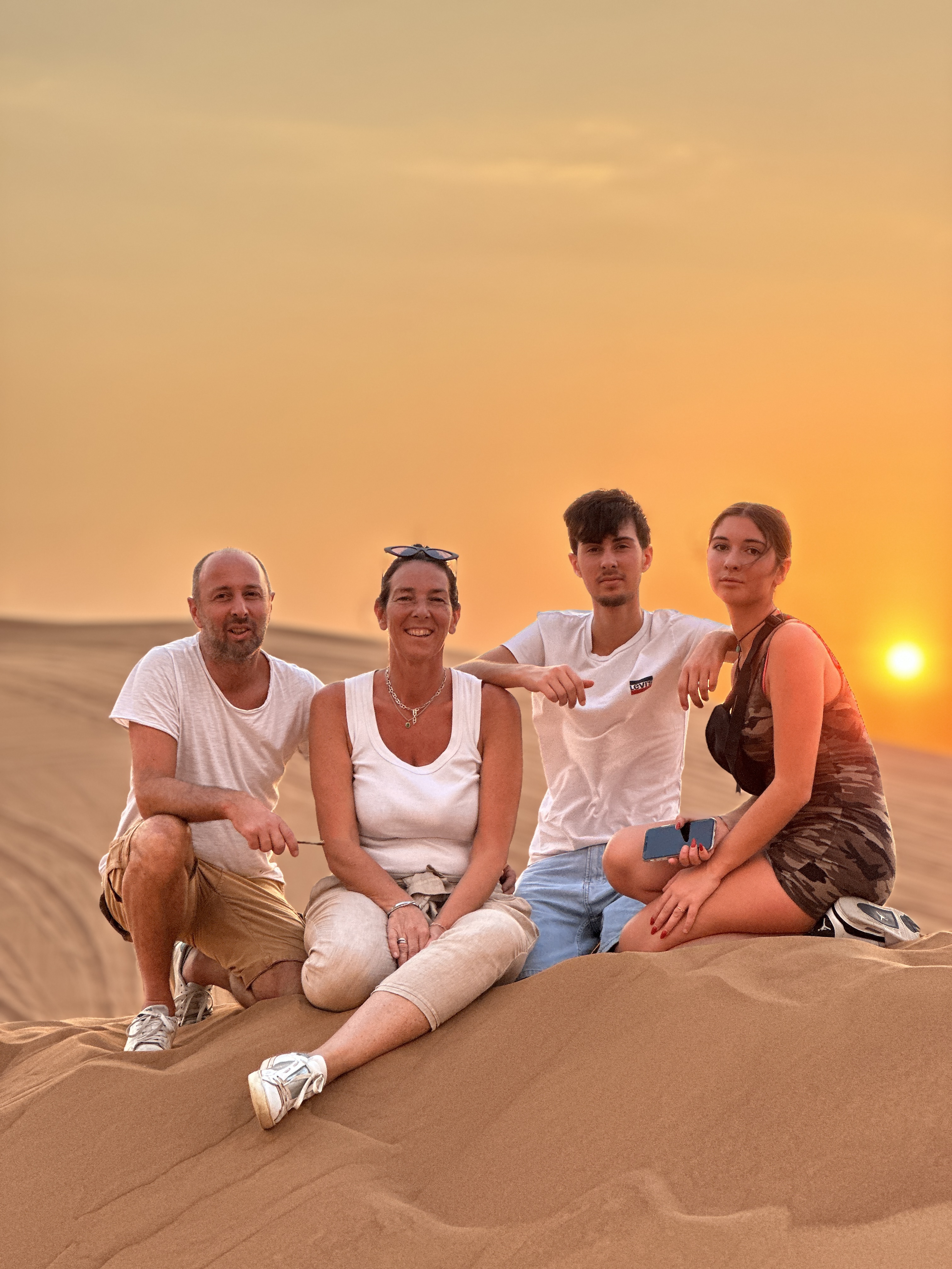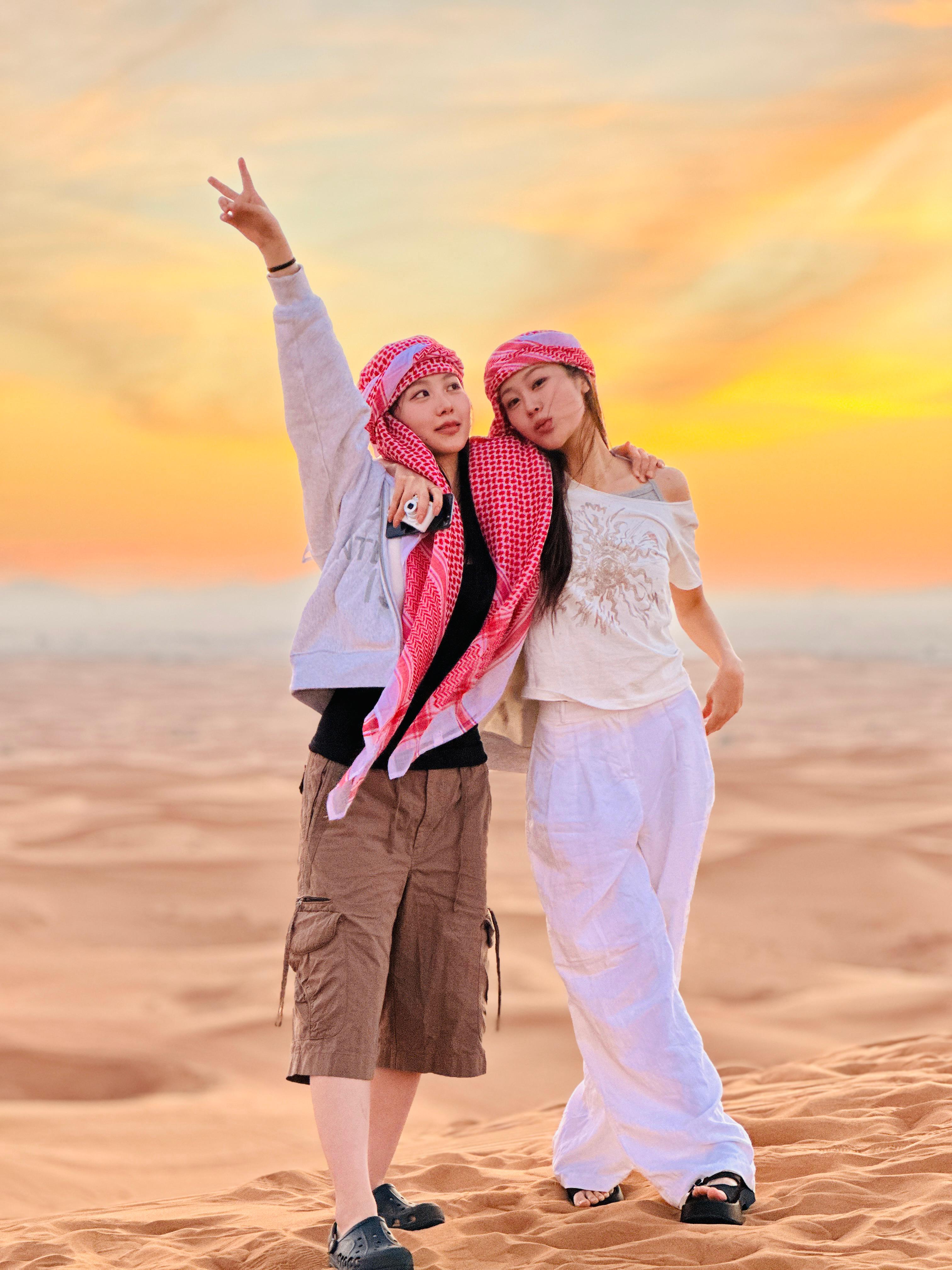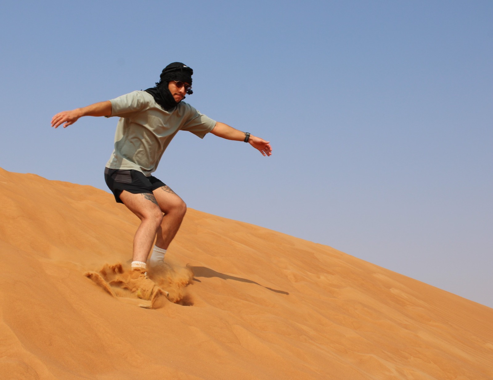 두바이의 광활한 레드 듄 사막에서 황혼의 황금빛을 온몸으로 느끼며 짜릿한 듄 베이싱과 샌드보딩을 즐겨보세요.