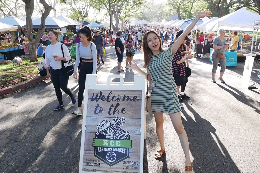 하이킹 후에는 KCC 파머스 마켓에서 자유시간이 주어져 로컬 음식과 문화 체험을 할 수 있어요. 아침 시장에서 식사와 쇼핑을 하고 나면 다시 와이키키로 편안하게 돌아오는 일정이에요.
