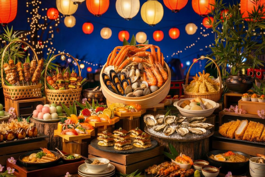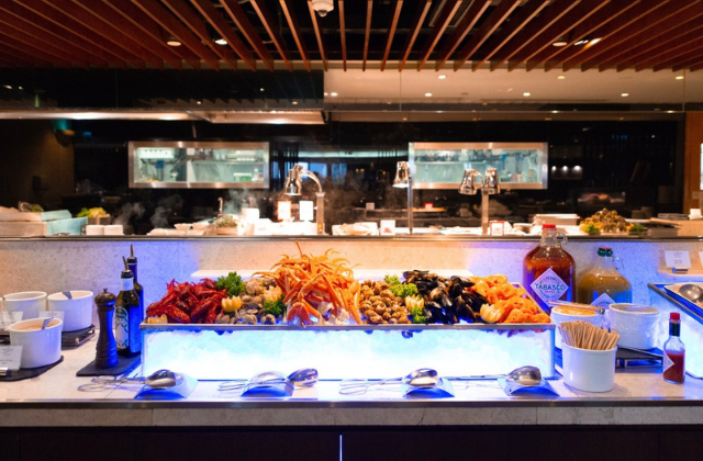매일 저녁 철판 구이 코너에서 갓 구워낸 스테이크와 해산물의 고소한 향기가 여행의 즐거움을 더해준답니다.