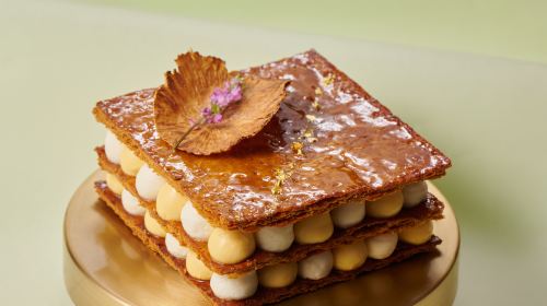 클래식한 3층의 페이스트리 디자인에 라임과 파인애플 퓨레, 화이트 초콜릿 가나슈, 그리고 바닐라 크림 소스를 더해 상쾌한 맛의 즐거움을 선사해요.