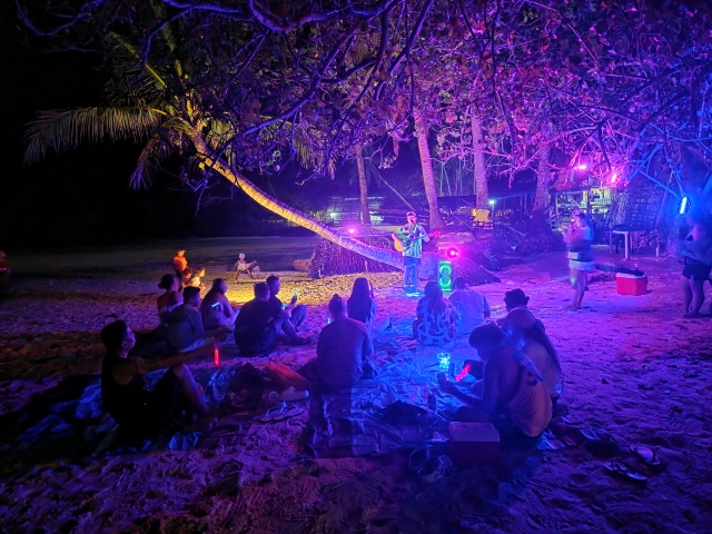 첫 번째 해변 정류장에서는 은은한 조명과 파도 소리 속에서 라이브 어쿠스틱 공연을 즐길 수 있어요. 사진 촬영을 하며 밤 해변의 고요한 분위기를 만끽할 수 있답니다. 친구들과 함께 인생샷을 남기거나, 노래를 부르며 추억을 쌓는 시간이 돼요.