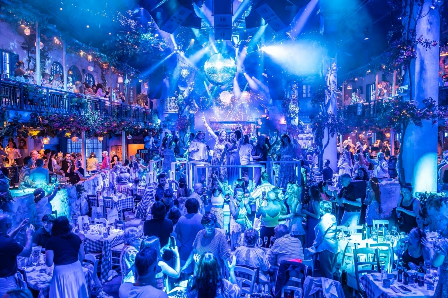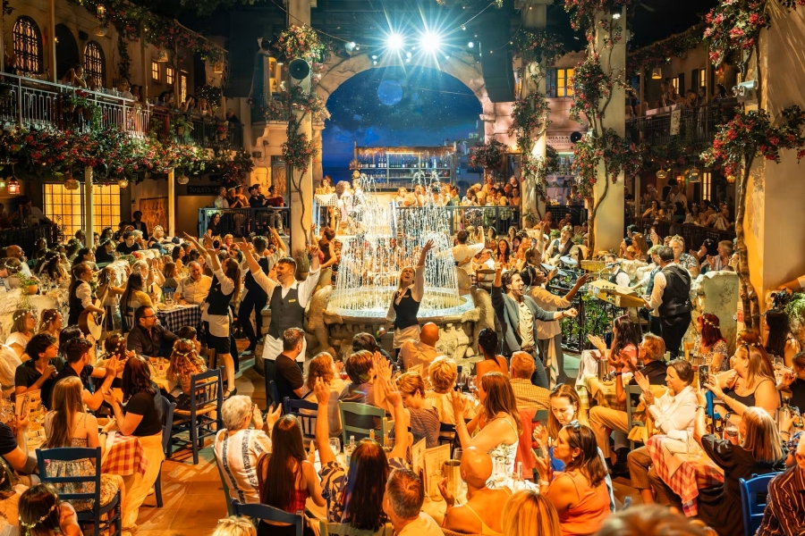런던 The O2 안에 실제 타베르나 콘셉트 공간이 조성돼 여행 온 듯한 분위기를 느껴요. 그리스 섬 휴양지 같은 공간에서 식사하고, 춤추고, 웃으며 축제 같은 밤을 마음껏 만끽해 보세요.