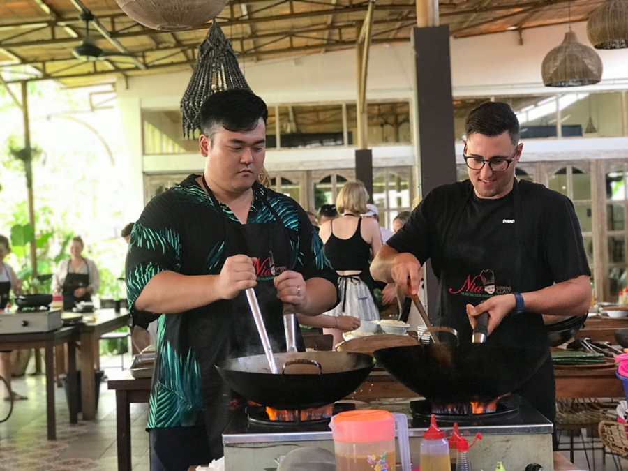 자신이 만든 발리 요리를 바로 맛보며 여행의 즐거움을 더해요.