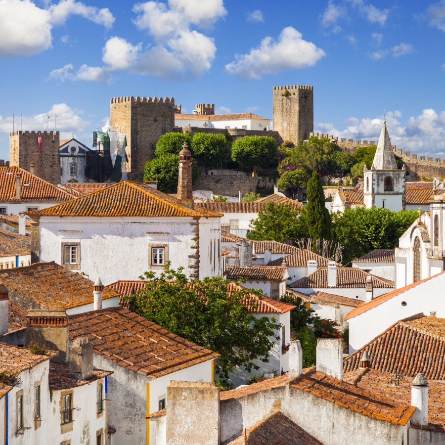 가장 먼저 닿는 곳은 여왕의 마을, 오비두스입니다. 노란색과 파란색으로 칠해진 낮은 담벼락, 그 위를 타고 올라간 붉은 꽃들이 마치 그림 속에 들어온 듯한 착각을 불러일으킵니다. 성벽 위를 천천히 걸으며 중세의 공기를 마시고, 달콤쌉싸름한 체리주 '진지냐' 한 잔에 여행의 흥을 돋워보세요.
